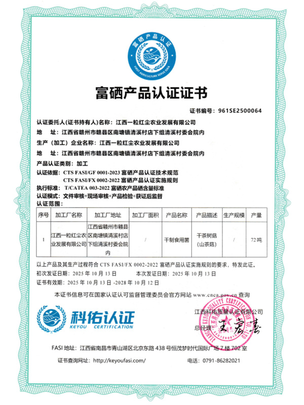 江西一粒紅塵農(nóng)業(yè)發(fā)展有限公司是一家總部位于江西省贛縣的現(xiàn)代農(nóng)業(yè)多元型企業(yè),專注于食用菌的研發(fā)種植深加工貿(mào)易研教培農(nóng)文旅等全產(chǎn)業(yè)鏈發(fā)展。公司秉承“健康綠色共享共贏”的核心價值觀,致力于引領鄉(xiāng)村振興之路,旨在成為......